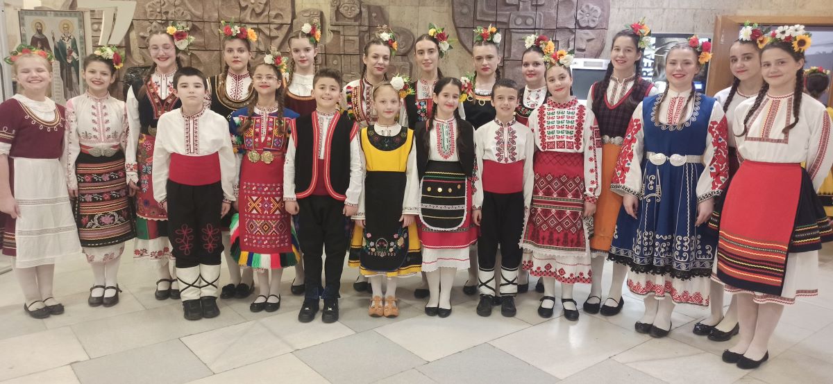 Младите изпълнители се завърнаха с първо място в раздел народни хорове, трето място и стипендия за Кристина Топалова, а диплом за отлично представяне получиха Йоана Ненова и Виктория Дангова.