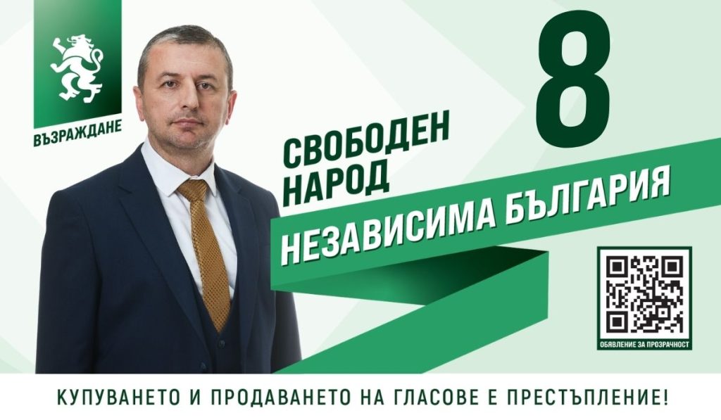 *Публикуваният материал е предоставен от пресцентъра на ПП „ВЪЗРАЖДАНЕ“, във връзка с изборите за 52 Народно събрание, съгласно сключен договор за рекламно – информационно обслужване. „ГЕРБ – СДС“ е под номер 8 в интегралната бюлетина. Купуването и продаването на гласове е престъпление.*
