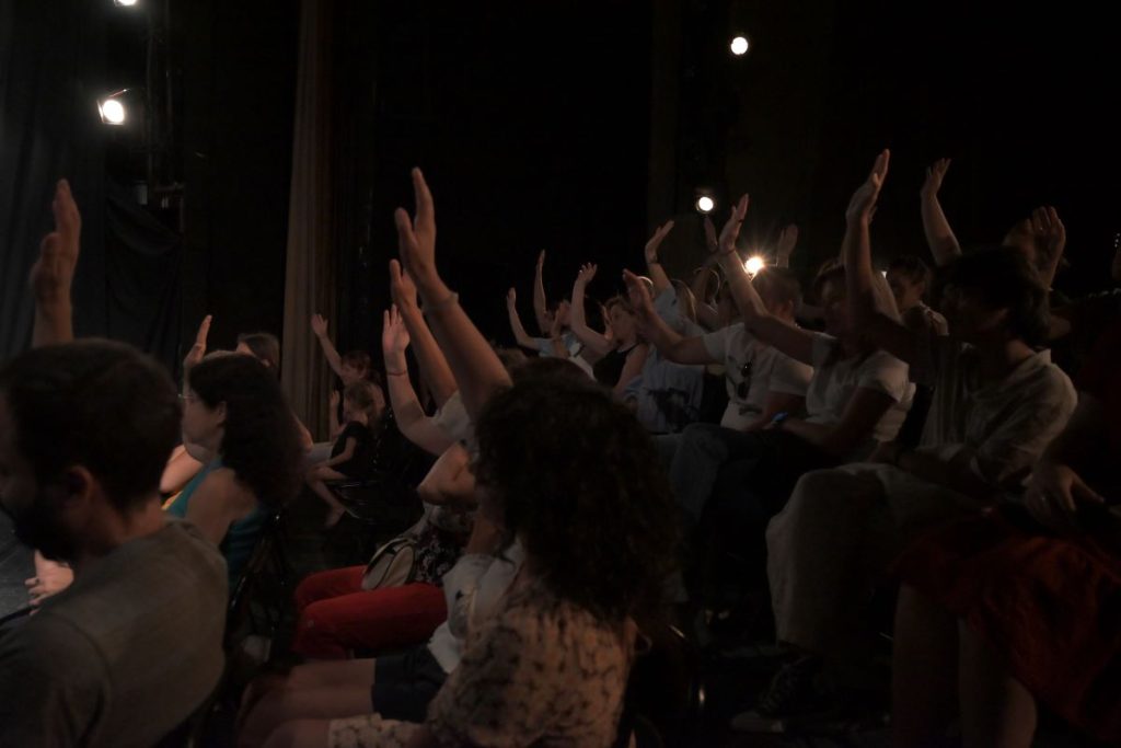Актьорите отново изиграват сцената, като всеки един зрител има право да я прекъсне в момент, в който мисли, че може да се постъпи по друг, предложен от него, начин. Така се тестват ситуациите и развитието на казуса според новите предложения. Публиката участва активно с гласуване, мнения и насоки.