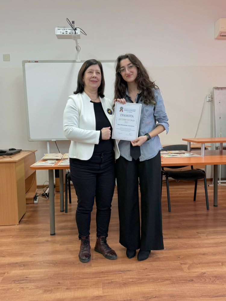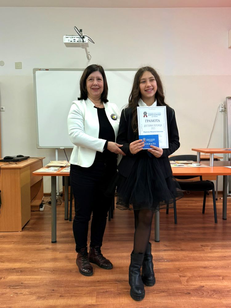 Първа категория: Михаела Цветанова Косева (IIб), Юлия Стойнова Минева (IIб), Невин Ерол Халил (IIIб), Божидар Венелинов Соколов (IVa), Йоана Иванова Дечева (Vб), Радост Цветанова Косева (Vб), Никола Пламенов Спасов (Vб), Кристиян Калоянов Анев (VIa), Катерина Николаева Кирякова (VIa), Преслава Пламенова Пенчева (VIIIa).