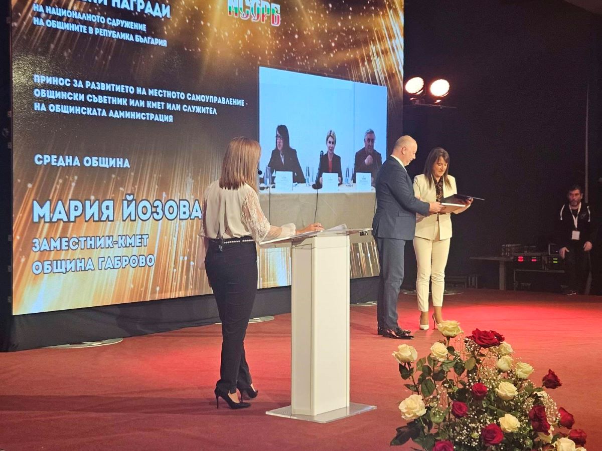 На Годишната среща на местните власти, организирана от Националното сдружение на общините в Република България (НСОРБ) в курорта Албена, зам.-кметът на Габрово Мария Йозова беше отличена с награда за значим принос в развитието на местното самоуправление.