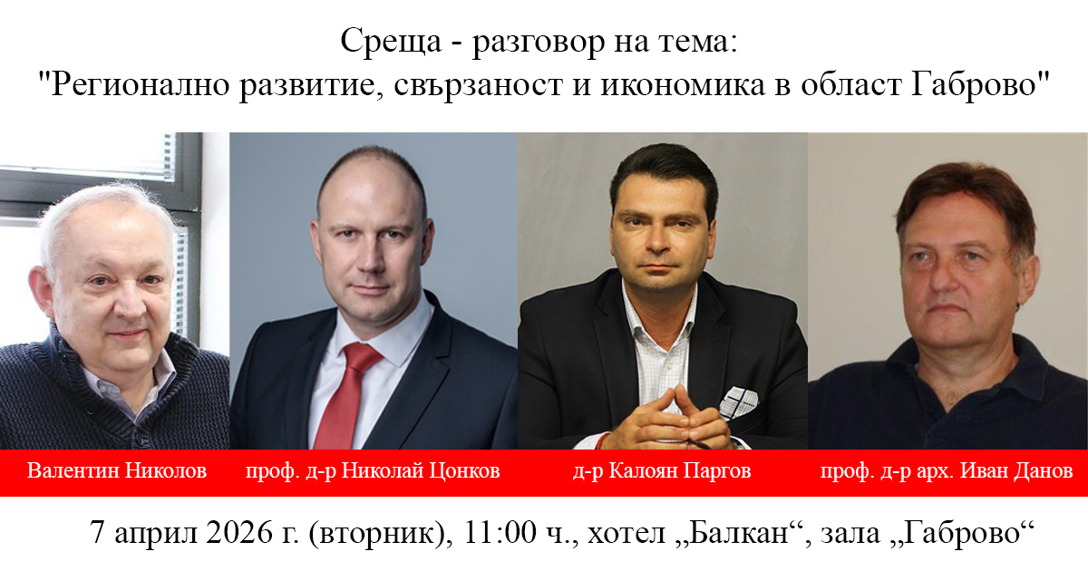 Очакваме Ви на 7 април 2026 г. (вторник) в 11.00 ч. в зала „Габрово“ на хотел „Балкан“ в гр. Габрово.