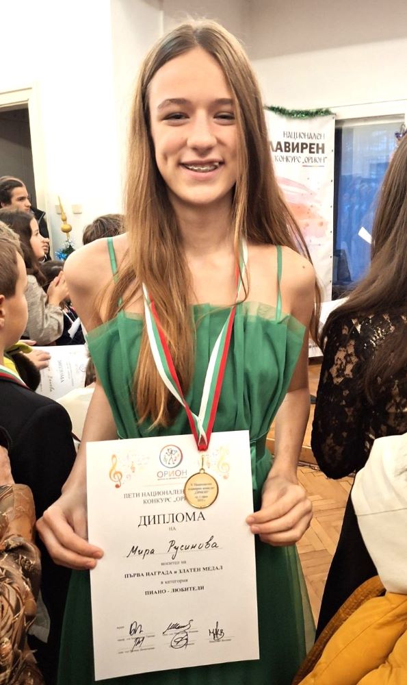 Младите пианисти от Музикален клуб „Весела“ отново доказаха своя висок професионализъм и талант, като спечелиха впечатляващи отличия на престижния Национален клавирен конкурс „Орион“, проведен в София през 2025 година. Три златни медала завоюваха Полина Флориду (11 клас), Мира Русинова (9 клас) и Кристина Стефанова (4 клас), които безапелационно грабнаха първите награди в своите възрастови групи.
