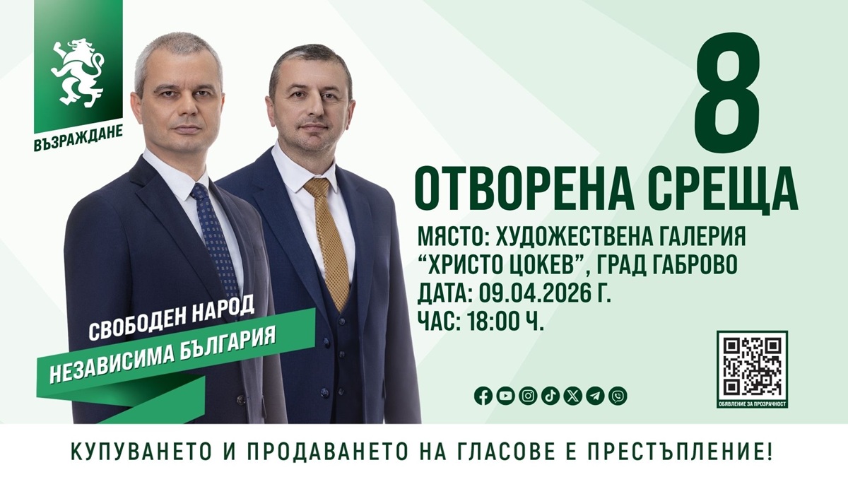 Всички, които искат да се запознаят с виждането на „Възраждане“ за управление на България, както и за тези, които желаят да разговарят лично за нея с кандидатите на „Възраждане“ за народни представители и председателят на “Възраждане” Костадин Костадинов, са поканени на отворена среща.