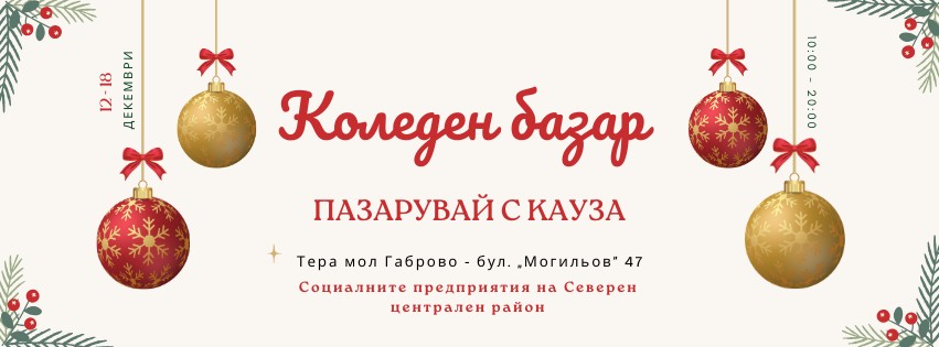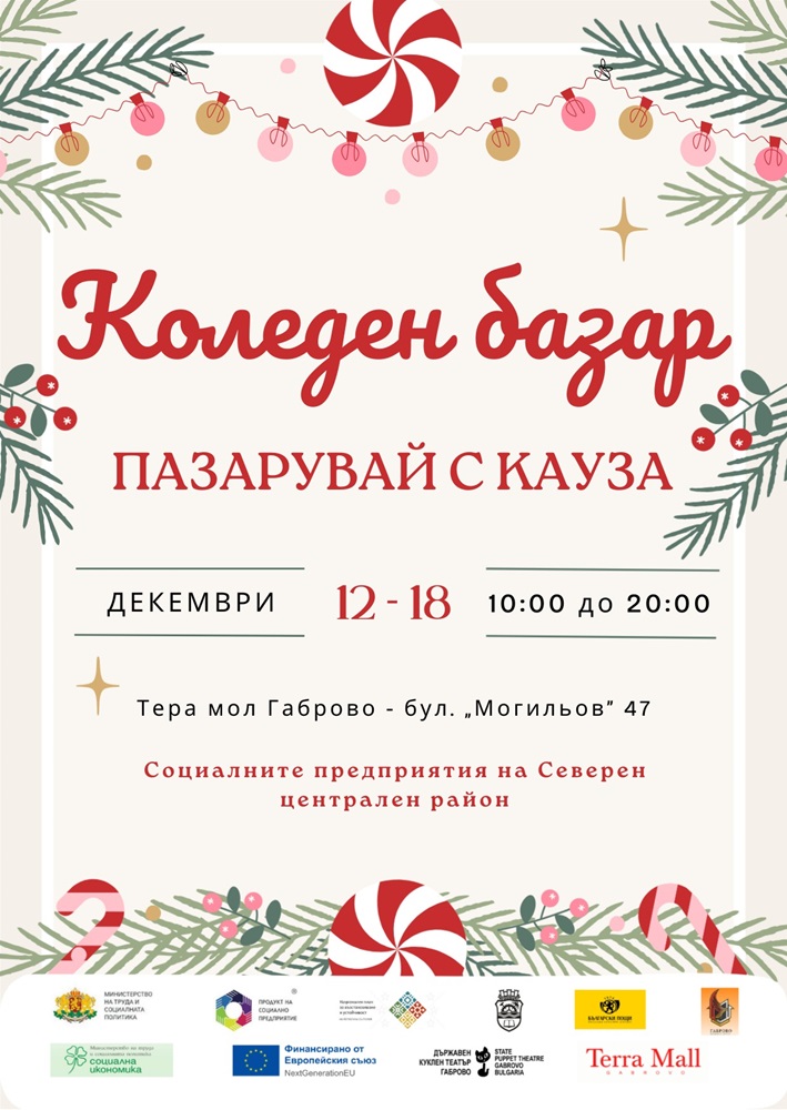 Габровският регионален център за социална икономика организира съвместно с Тера мол Габрово Коледен базар на социални предприятия от региона. Събитието ще се проведе от 12 до 18 декември 2025 г. на първия етаж в Тера мол Габрово (до ескалаторите) във времевия диапазон от 10.00 до 20.00 часа.