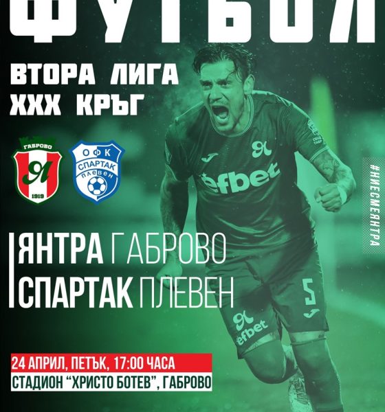 Нов труден двубой очаква Янтра в 30-ия кръг на първенството във Втора лига. На стадион „Христо Ботев“ този петък гостува намиращият се в отлична форма тим на Спартак. Мачът е с начален час 17.00.
