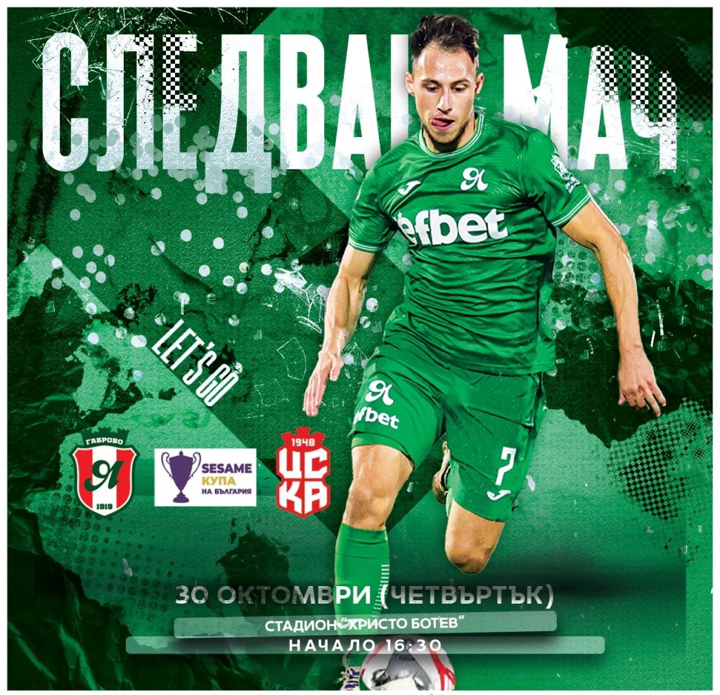 Футболен празник очаква Габрово този четвъртък, когато „Янтра“ посреща един от най-силните отбори в efbet Лига – „ЦСКА 1948“. Двубоят от 1/16-финалната фаза на турнира за Купата на България ще се играе на 30 октомври от 16.30 ч. на стадион „Христо Ботев“.Това ще е вторият пореден домакински двубой на новоизграденото осветление на стадион „Христо Ботев“.